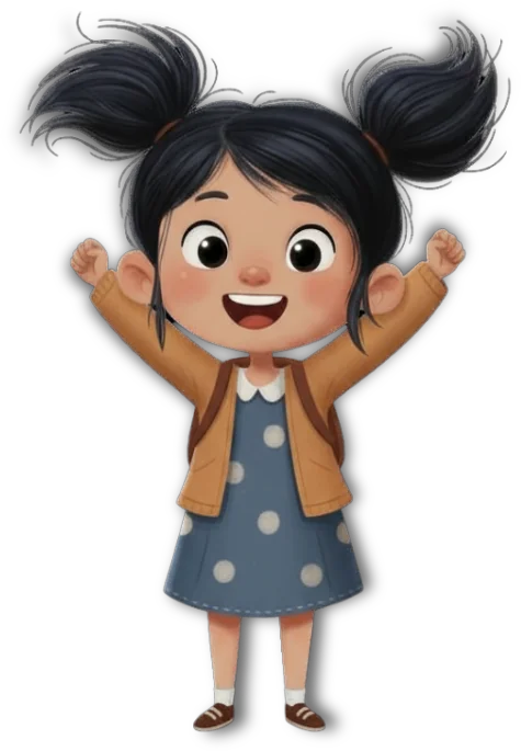 Een vrolijk, nieuwsgierig meisje dat op aarde woont. Ze bouwt torens van blokken, eet graag broodjes in het gras en rent door bloemenweiden. En als het even niet lukt? Dan staat Toon altijd voor haar klaar.